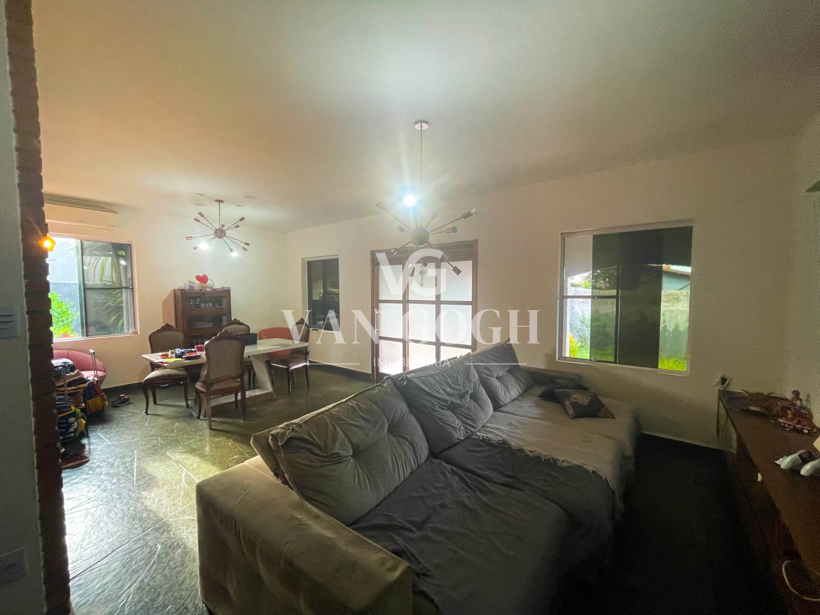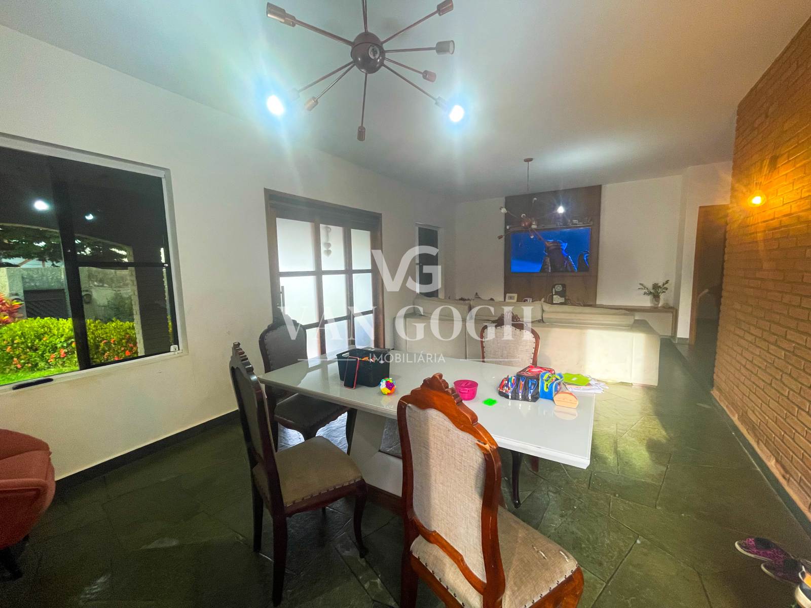 Sala de TV integrada com sala de jantar ampla