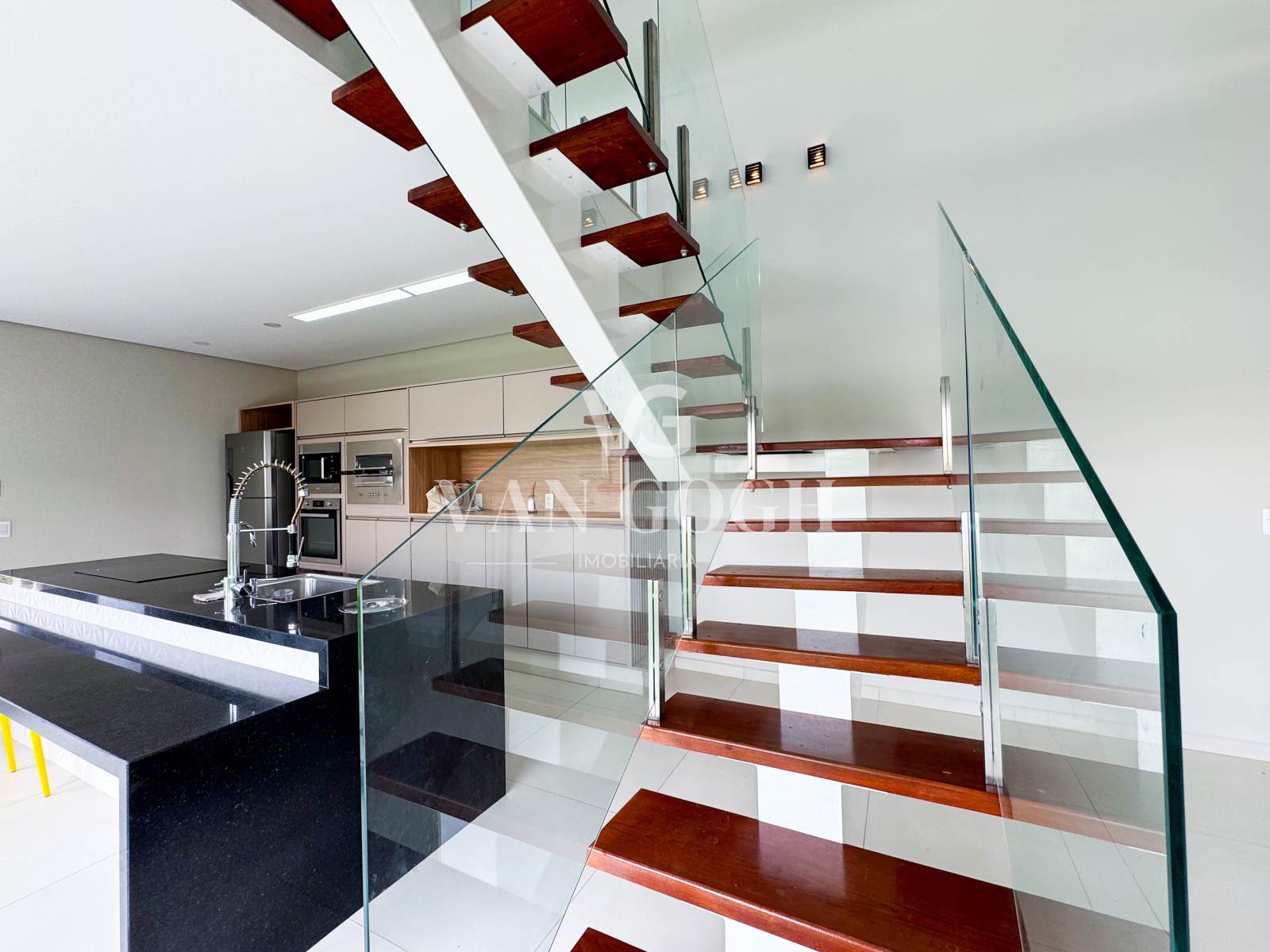 Internamente, a casa possui móveis planejados em todos os ambientes, garantindo funcionalidade e elegância. As persianas elétricas trazem praticidade e modernidade ao dia a dia.