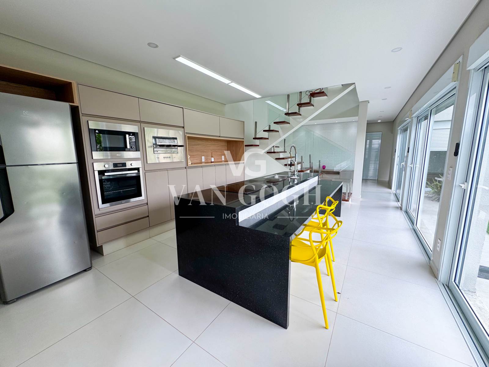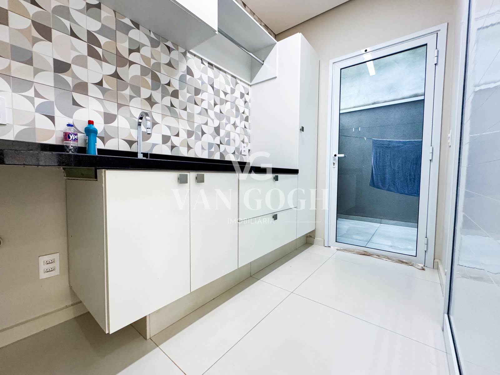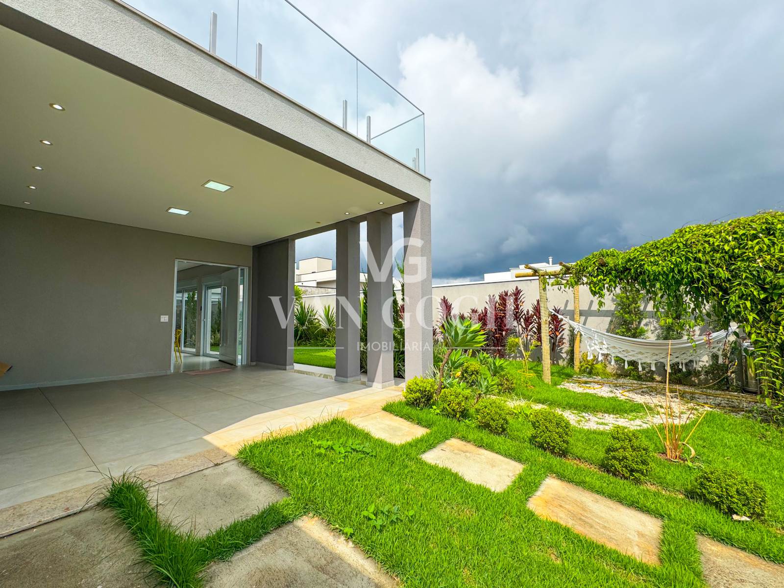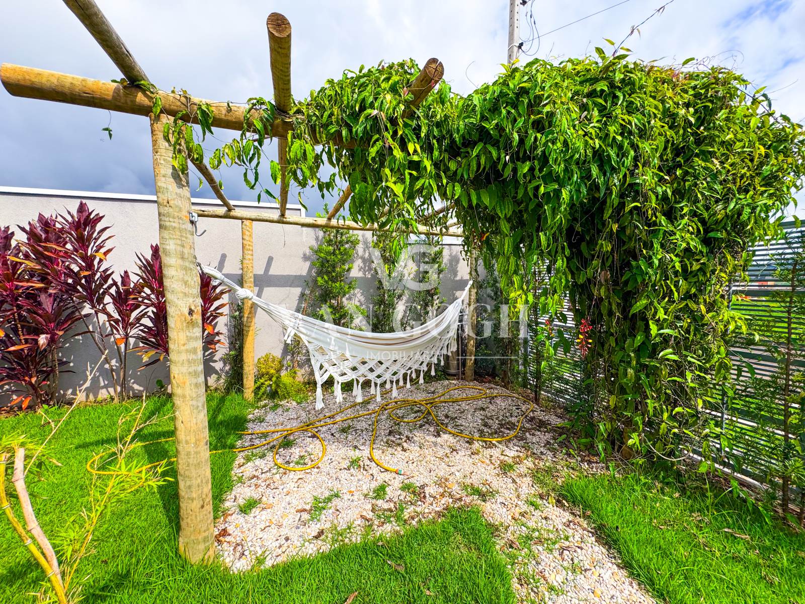 O imóvel conta com área gourmet integrada ao jardim, equipada com churrasqueira americana, perfeita para momentos de lazer. O paisagismo valorizado e o espaço com redário proporcionam um ambiente aconchegante e sofisticado.