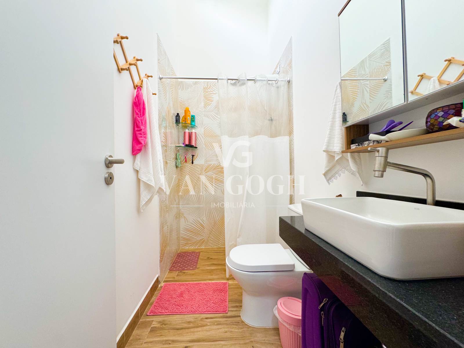A casa possui dois dormitórios, ambos suítes, garantindo mais conforto e privacidade aos moradores. Os quartos são bem distribuídos e oferecem espaço adequado para acomodar a rotina da família com comodidade.