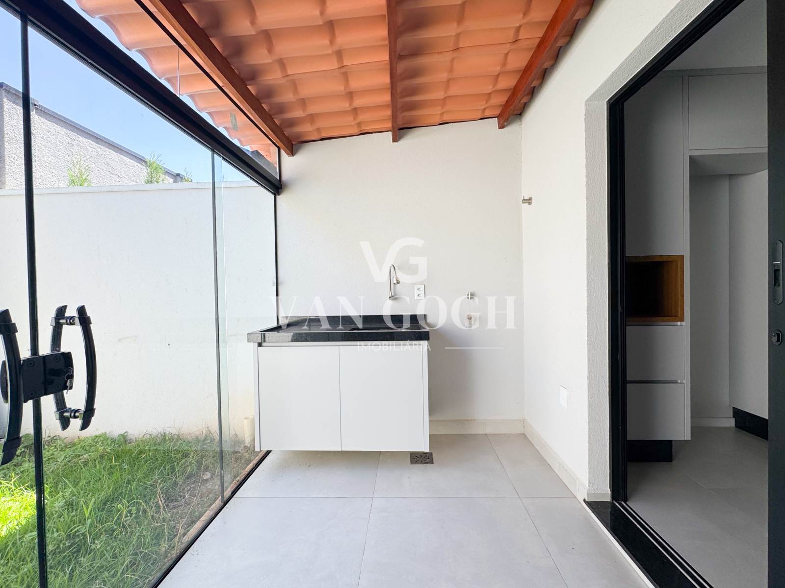 Além das suítes, a casa também dispõe de lavabo, área de serviço funcional e uma confortável varanda, ampliando as possibilidades de uso dos ambientes.